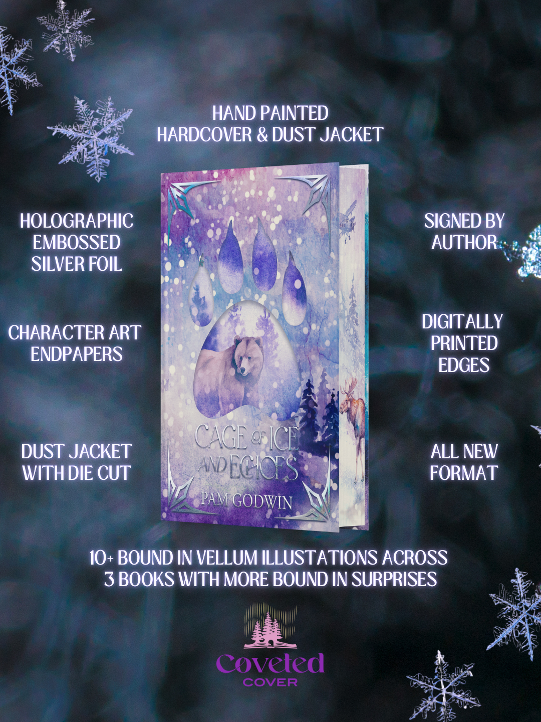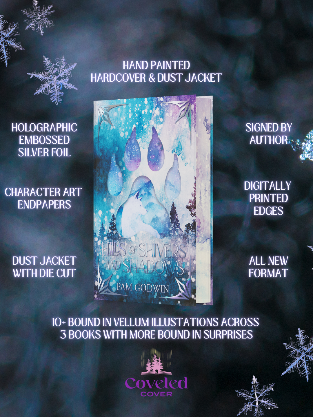 This listing is for a one-time purchase of Pam Godwin’s Frozen Fate Trilogy. This trilogy includes a special edition of Hills of Shivers and Shadows, A Cage of Ice and Echoes, and A Heart of Frost and Scars. This is a preorder listing; this series is expected to ship in May 2026. Please do not purchase this preorder without reading through this listing in its entirety.
